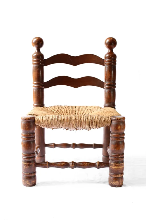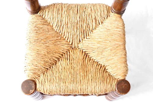 A charming turned oak and straw low chair very much in the manner of Charles Dudouyt. French, c. 1940s.